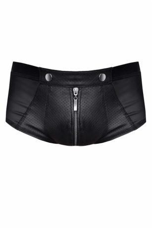 Diese Shorts aus 360° Wetlook-Stoff verbinden Sinnlichkeit, Komfort und aufregendes Design. Das elastische Material passt sich perfekt dem Körper an und betont das Gesäß auf verführerische Weise. Ein breites, angenehmes Gummiband in der Taille sorgt für sicheren Halt, während perforierte Wetlook-Einsätze und zwei silberfarbene Druckknöpfe auf der Vorderseite den Look elegant akzentuieren.